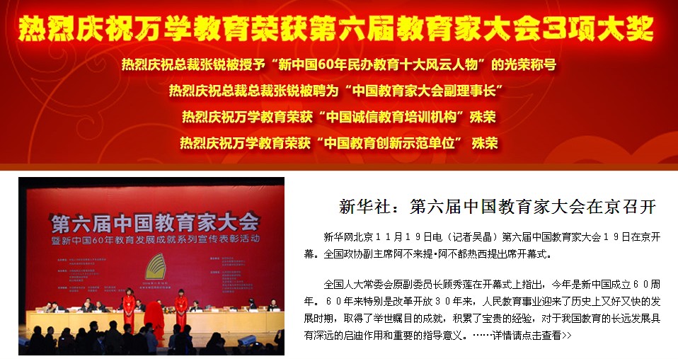 萬學(xué)教育(海文考研)科技有限公司總裁張銳榮獲“新中國60年民辦教育十大風(fēng)云人物”的獎(jiǎng)項(xiàng)。
